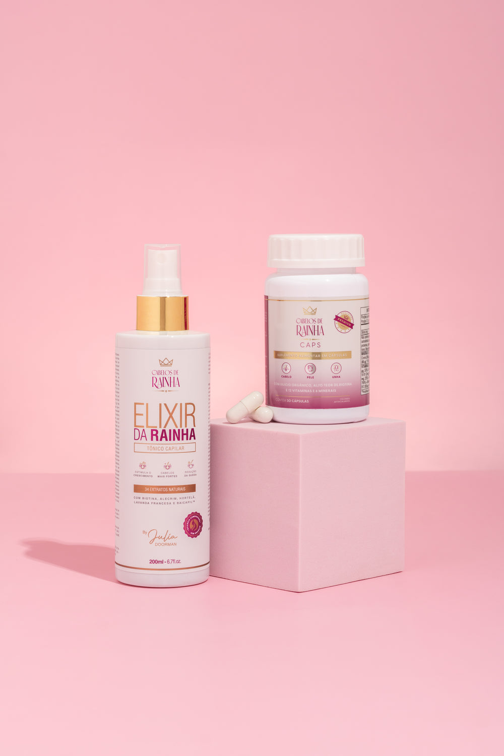 ✨ O kit de Crescimento e fortalecimento Cabelos de Rainha foi desenvolvido por Julia Doorman, terapeuta capilar, com ativos selecionados que ajudam a estimular o crescimento, reduzir a queda e fortalecer os fios desde a raiz.