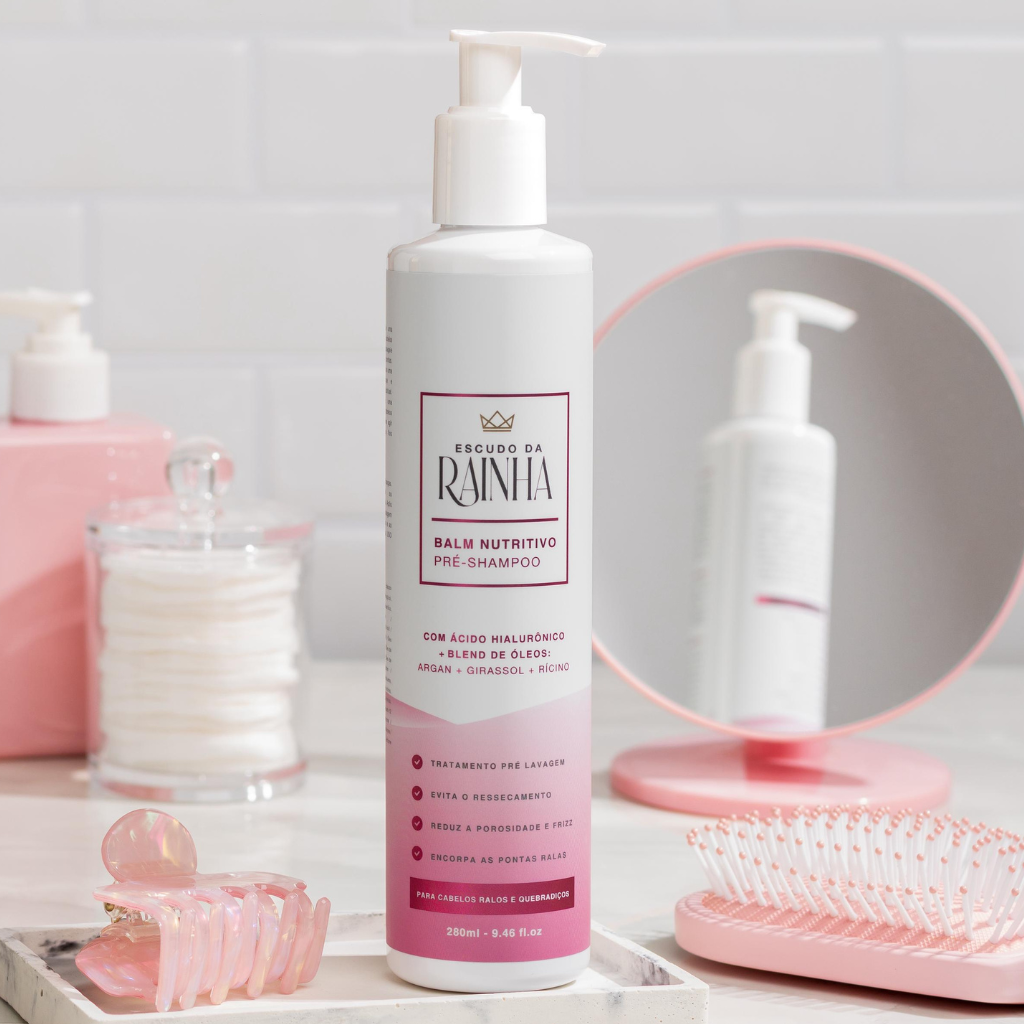 Mais do que um simples pré-shampoo, o Escudo da Rainha é um Balm Nutritivo com a exclusiva Tecnologia do BioEscudo Capilar™ que protege e traz uma profunda nutrição aos fios. Ajudando a encorpar as pontas ralas, reduzir o frizz e fortalecer os fios quebradiços desde a extensão até as pontas (e o mellhor, sem pesar).